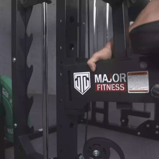 Securely mounts onto compatible Major Fitness racks and Smith machines in seconds—no tools or modifications required.